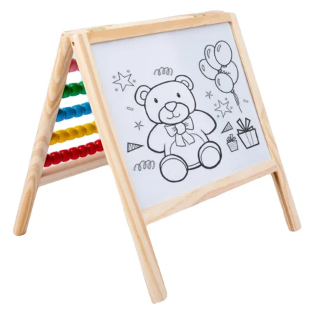 Aceasta tabla educativa din lemn este alegerea perfecta pentru dezvoltarea creativitatii, gandirii logice si abilitatilor de scriere ale copiilor. Cu o constructie solida din lemn si design pliabil, setul este usor de folosit acasa, la gradinita sau in timpul jocului liber.