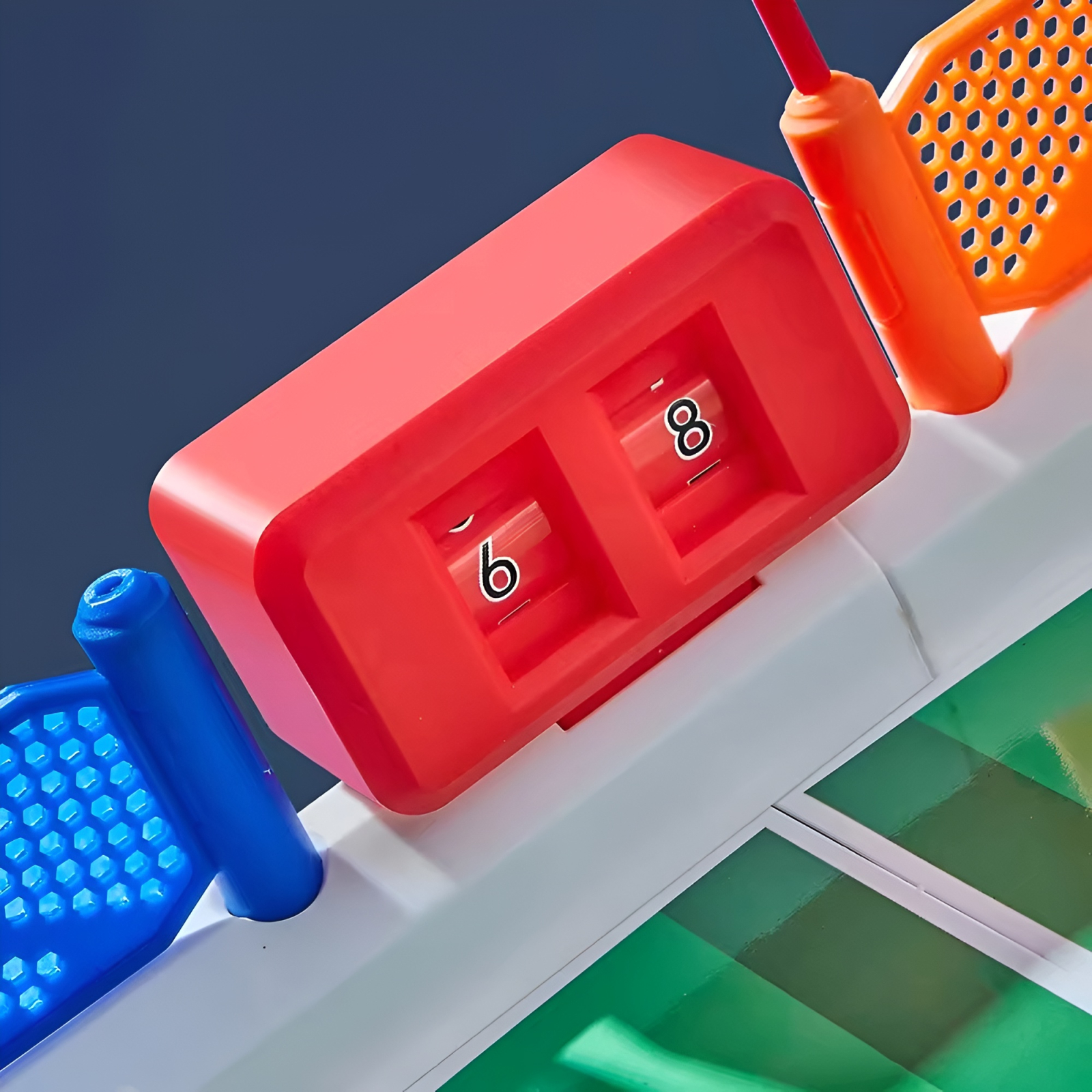 Dimensiunile generoase (aprox. 56 x 30 x 15 cm) permit o joacă confortabilă, iar componentele modulare și colorate fac jocul atractiv și ușor de montat. Copiii pot lansa mingea, apăra poarta și marca goluri într-un ritm alert, dezvoltându-și reflexele, coordonarea și spiritul de competiție.