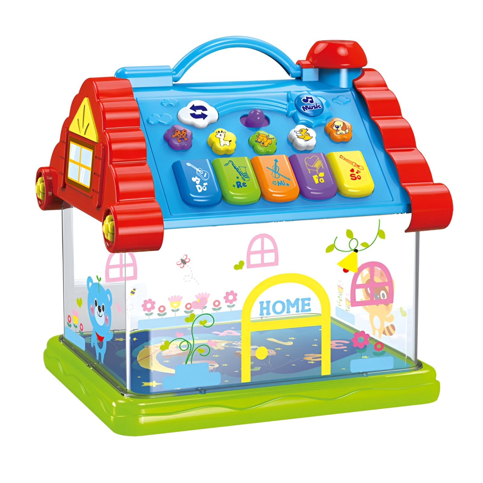 Căsuța educativă muzicală pentru copii este o jucărie interactivă concepută pentru a stimula dezvoltarea cognitivă, auditivă și vizuală a copiilor cu vârsta de peste 3 ani. Prin combinația de muzică, lumini colorate și sunete tematice, copilul învață prin joacă și explorare.