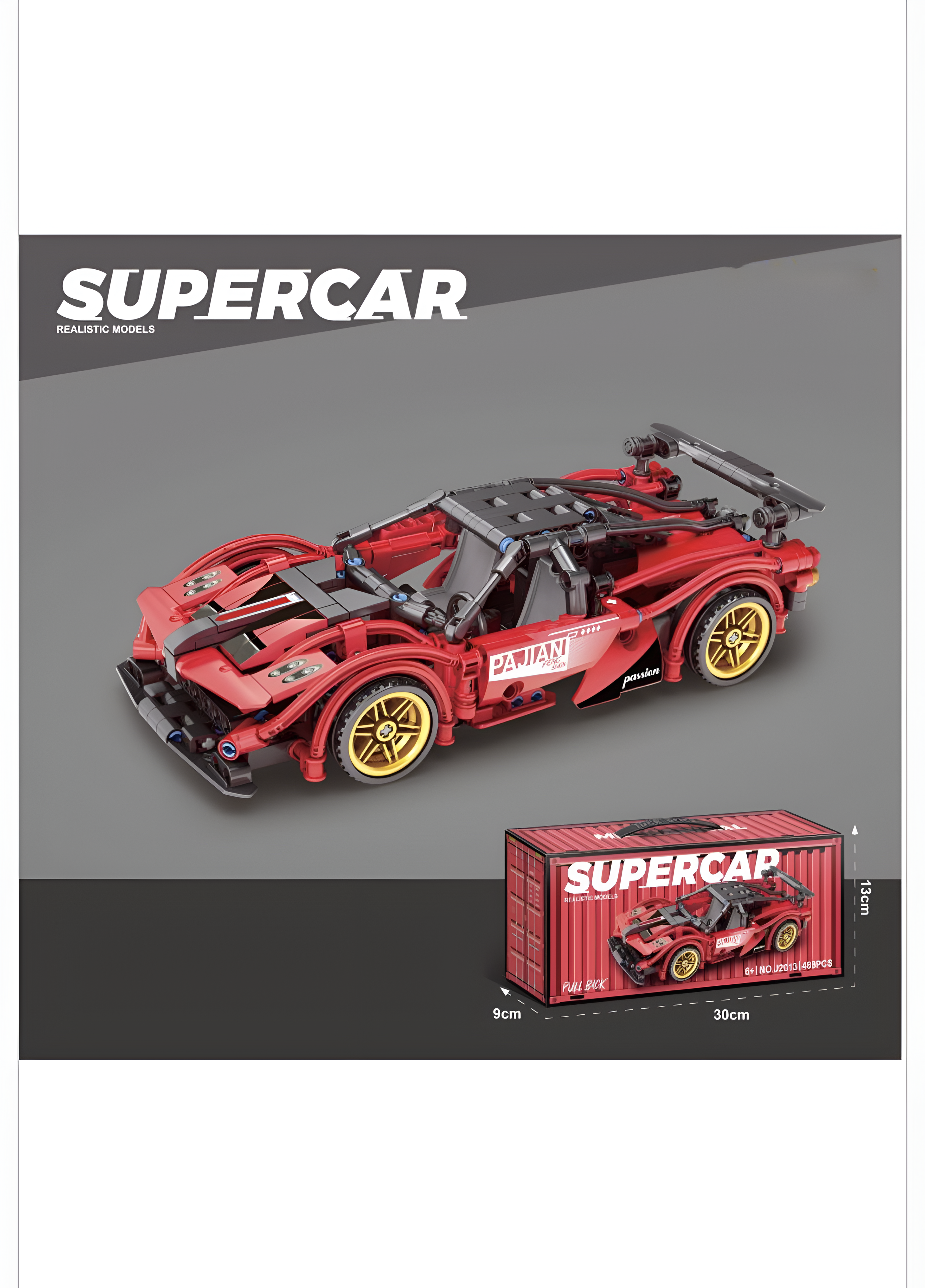Mașină sport din piese tip construcție – Model supercar realist, set de asamblare pentru copii și adolescenți, 6+ ani