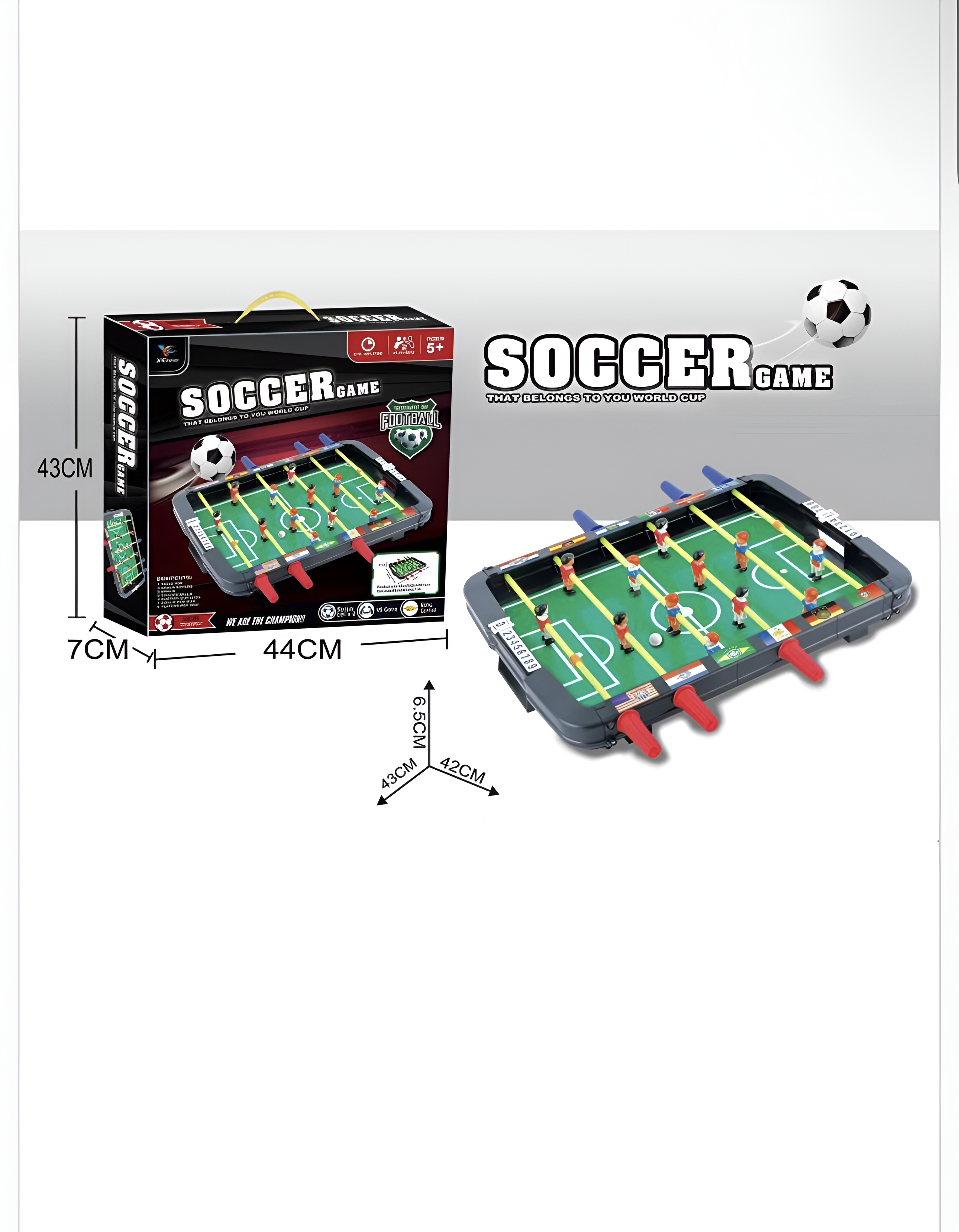 Oferă copiilor ore întregi de distracție cu această masă de fotbal tip foosball, ideală pentru joacă în familie sau competiții între prieteni. Designul realist, jucătorii 3D colorați și mânerele ergonomice creează o experiență autentică de joc, asemănătoare meselor de fotbal profesionale.