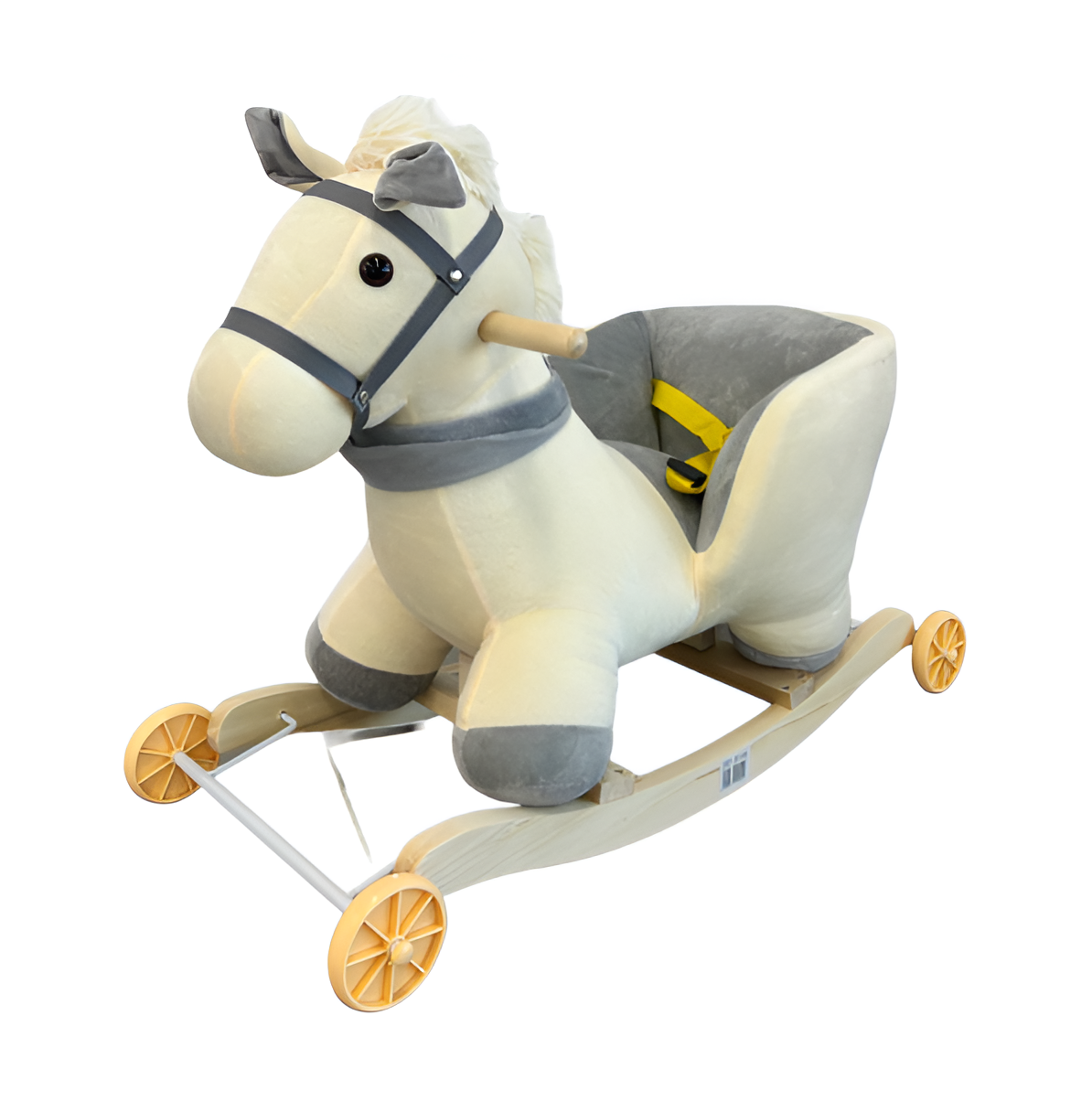 Cal Balansoar 2 în 1 din Pluș Crem cu Roți și Scaun cu Centură – Model Stabil și Confortabil pentru Copii