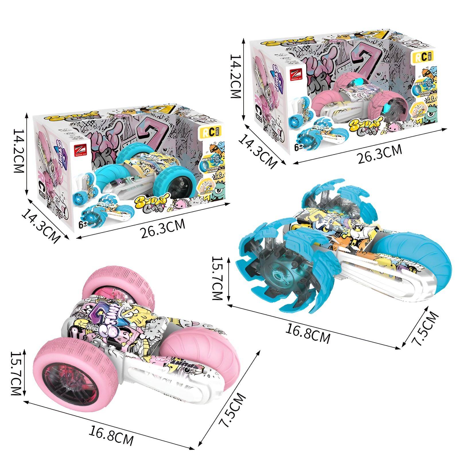 Descoperă Mașinuța RC Stunt Graffiti 360°, o jucărie spectaculoasă care combină drifturile, acrobațiile și un design urban plin de culoare! Perfectă pentru copiii energici, mașina se rotește la 360°, se ridică pe roți mari, se răstoarnă și luminează spectaculos datorită LED-urilor integrate.