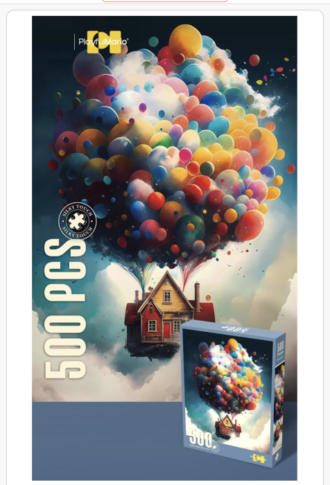 Puzzle artistic 500 piese – Casă zburătoare cu baloane colorate, joc de concentrare și relaxare pentru copii și adulți