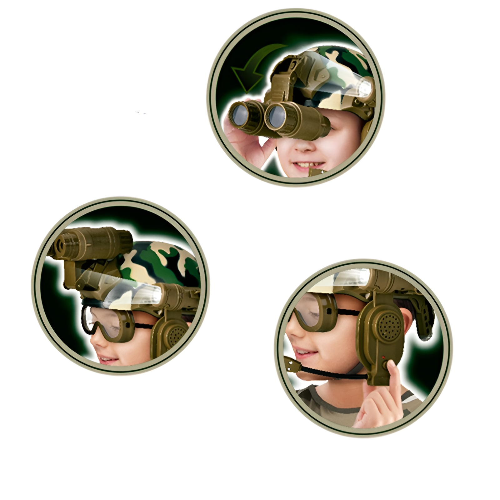Set Militar True Special Forces/ Set Polițist True Swat – Cască Camuflaj cu Binoclu, Lanternă, Ochelari, Microfon și Sunete – Echipament Soldat/ Echipament polițist pentru Copii 3+