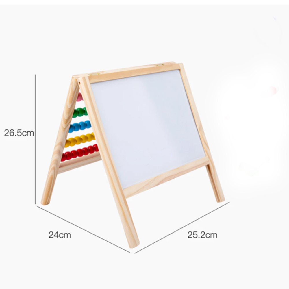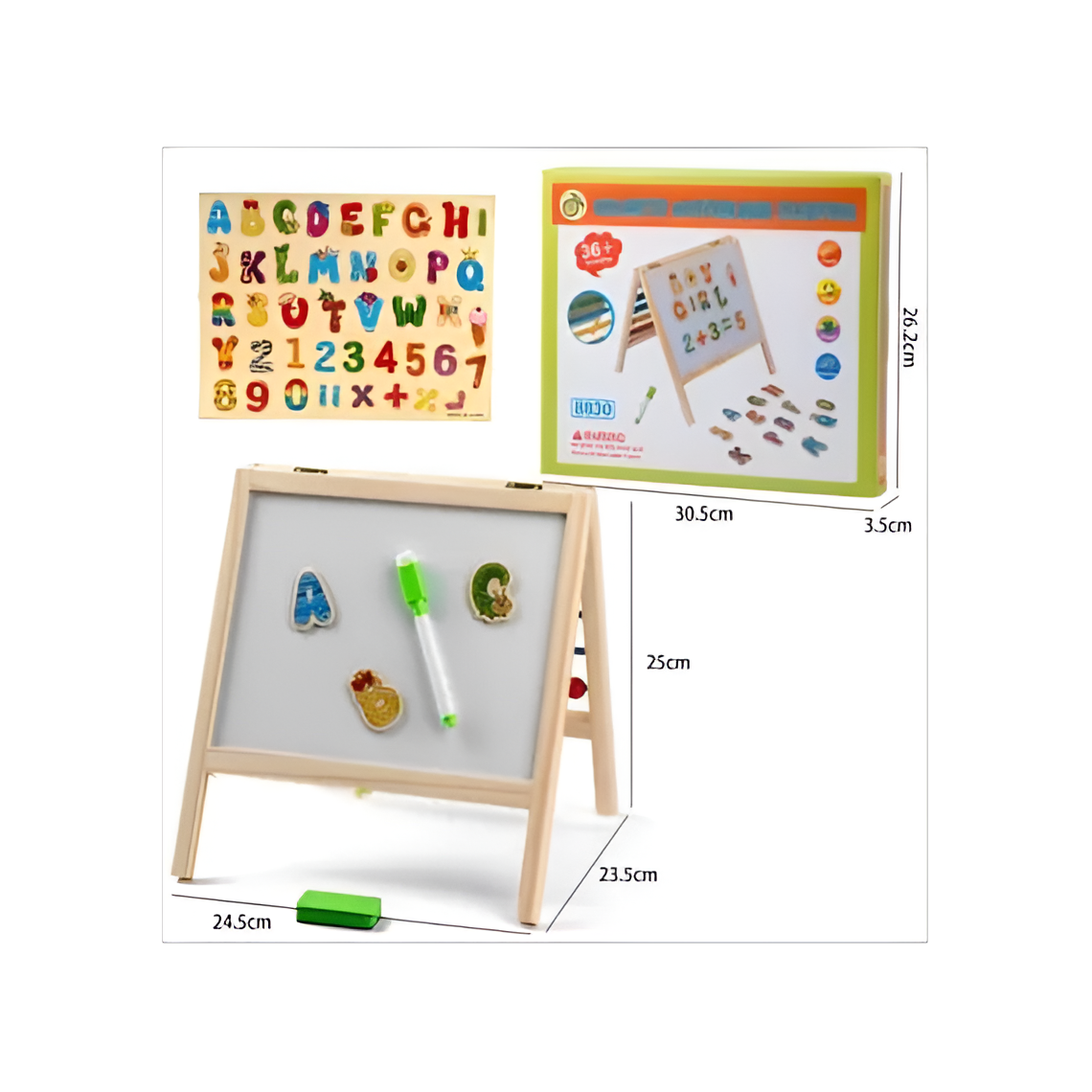 Aceasta tabla educativa din lemn este alegerea perfecta pentru dezvoltarea creativitatii, gandirii logice si abilitatilor de scriere ale copiilor. Cu o constructie solida din lemn si design pliabil, setul este usor de folosit acasa, la gradinita sau in timpul jocului liber.