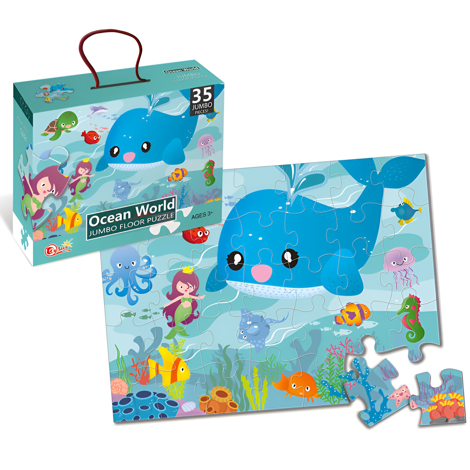 Puzzle de Podea Jumbo „Ocean World” – 35 Piese Mari, Educațional, Dezvoltare Cognitivă pentru Copii 3+ Ani