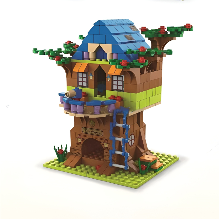 Acest set de construcție cu 1000 piese le oferă copiilor posibilitatea de a construi o spectaculoasă casă în copac, plină de detalii, accesorii și elemente creative.